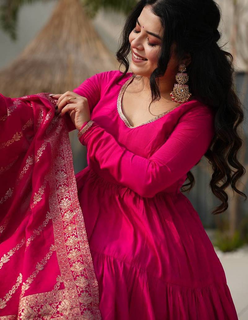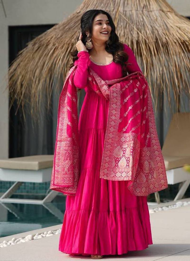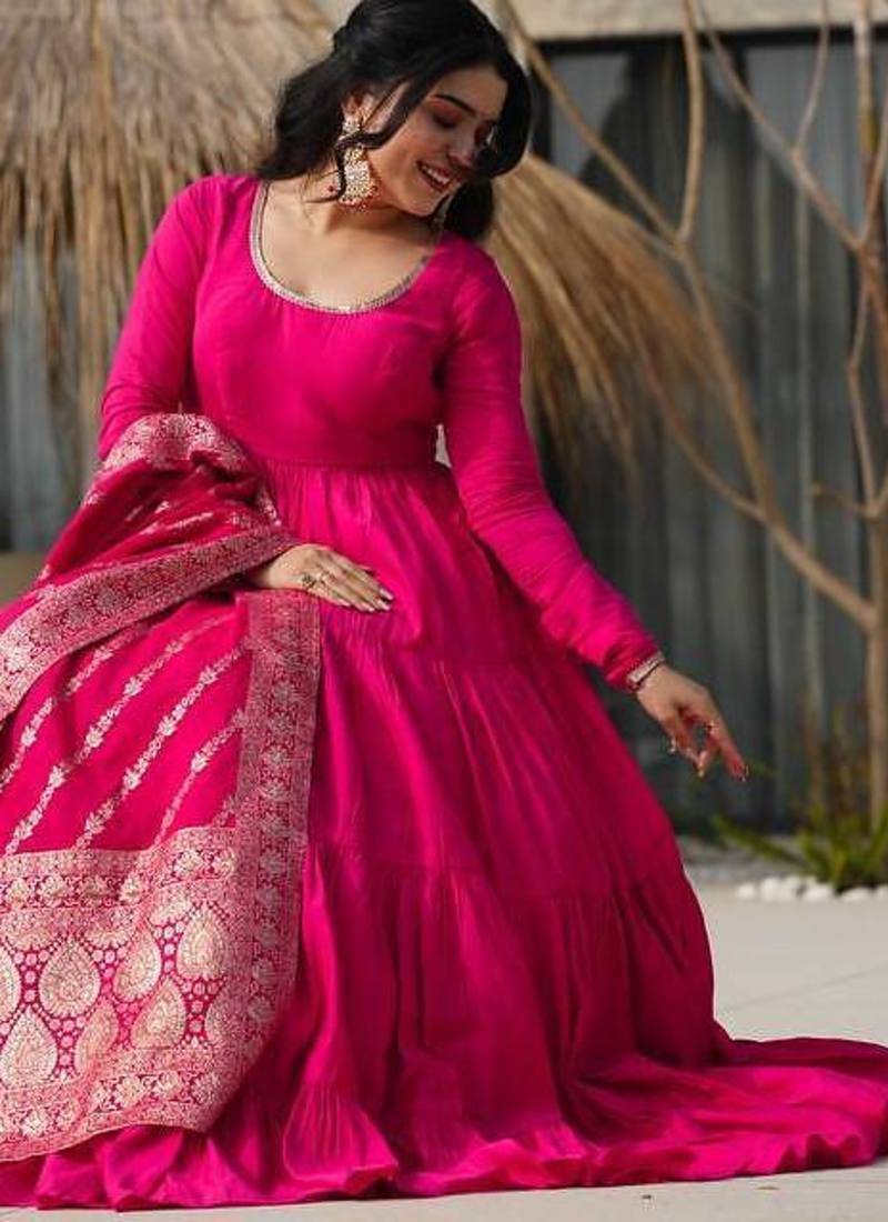 | Product Name | Pink Color Solid Romansilk Chanderi Anarkali Set | |