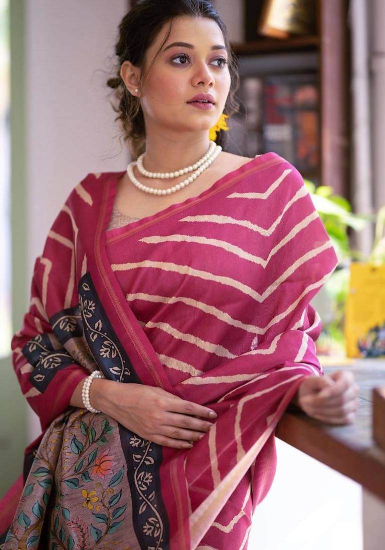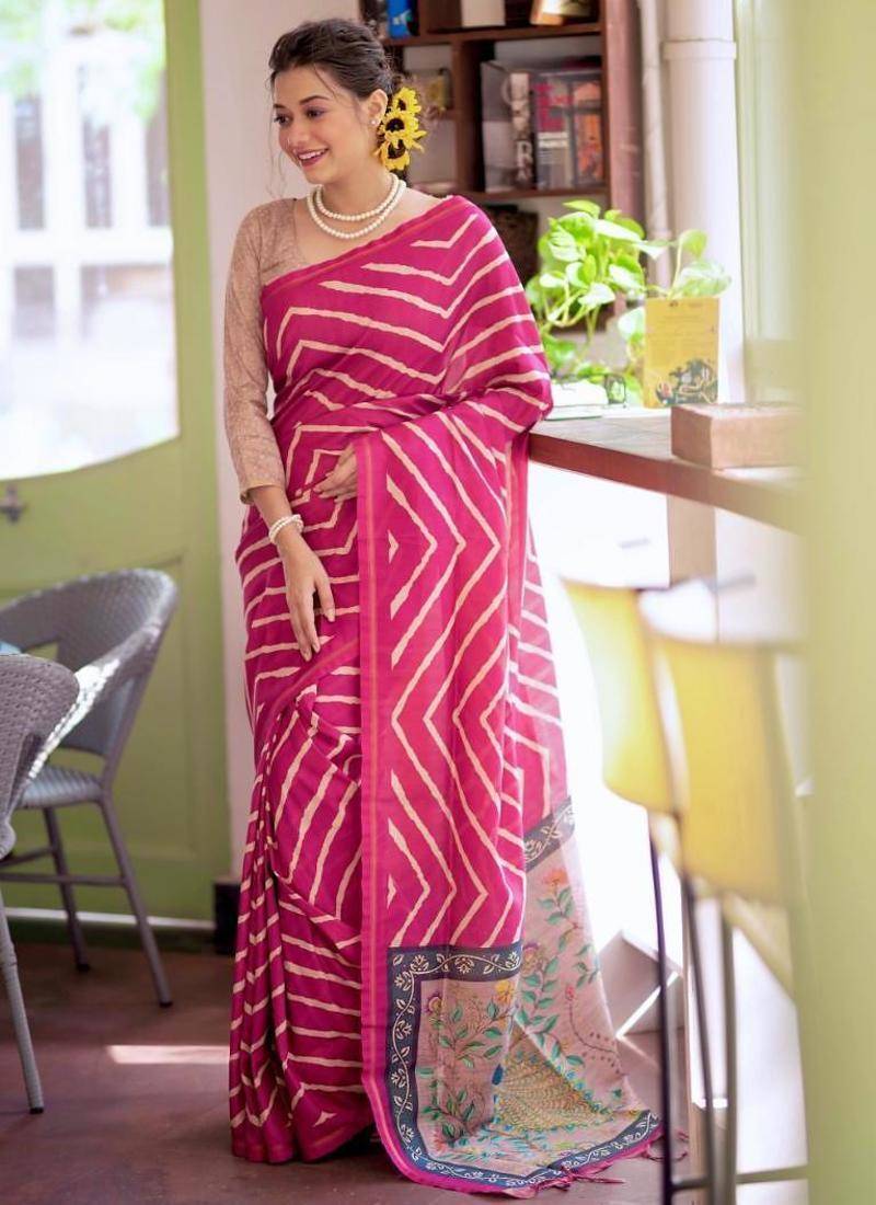 | Product Name | Pink Color Tussar Silk Lehariya Printed Zari Border Saree | |
