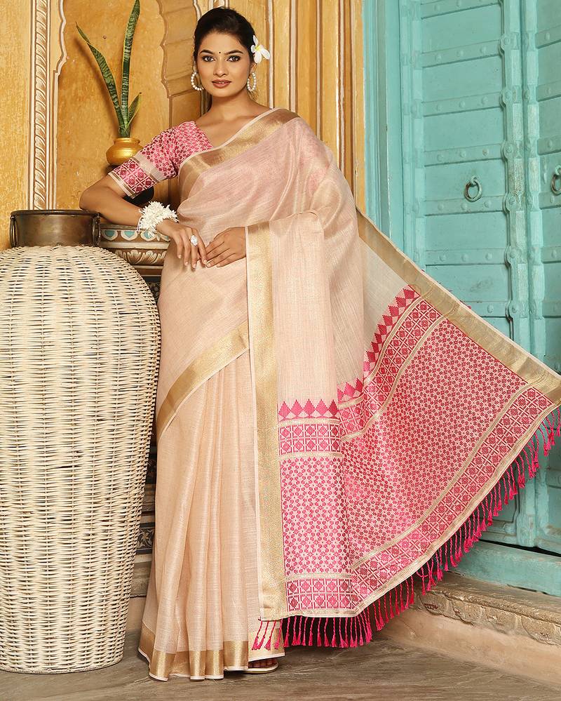 | Product Description | Linen Woven Zari Work Women's Beautiful Saree With Blouse Piece |