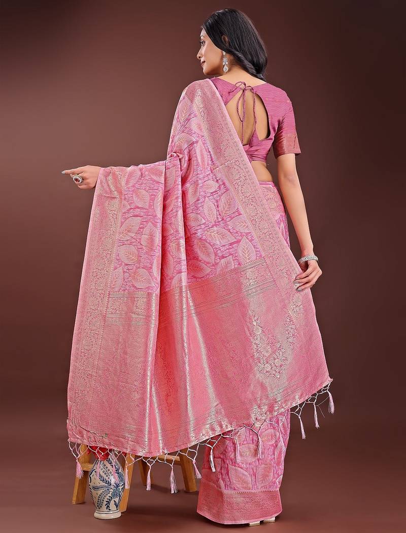 | Product Name | Pink Color Woven Work Cotton Saree With Blouse | |