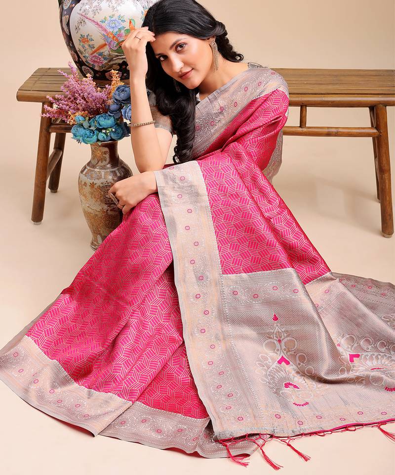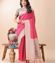 | Product Name | Pink Color Woven Work Lichi Art Silk Blend Saree | |
