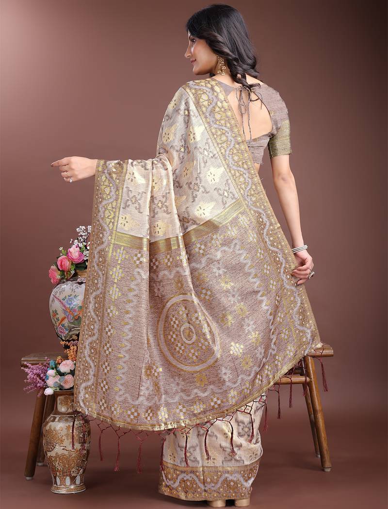 | Product Name | Brown Color Woven Work Linen Cotton Saree | |