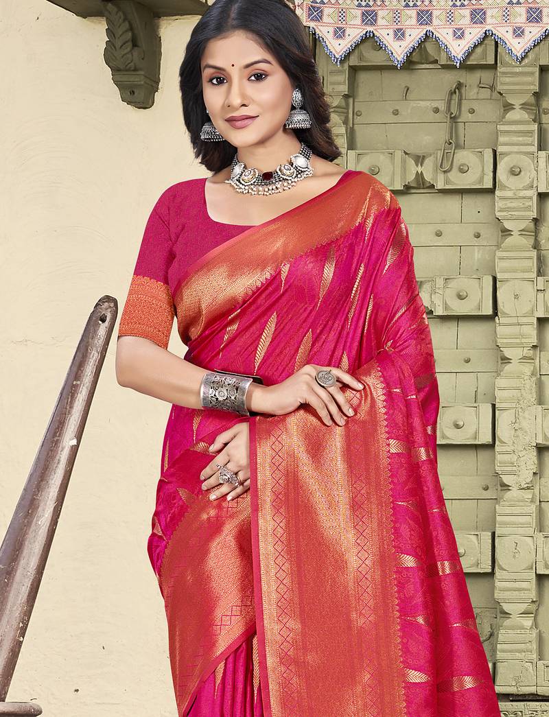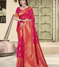 Pink color zari woven art silk party wear saree