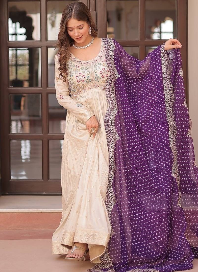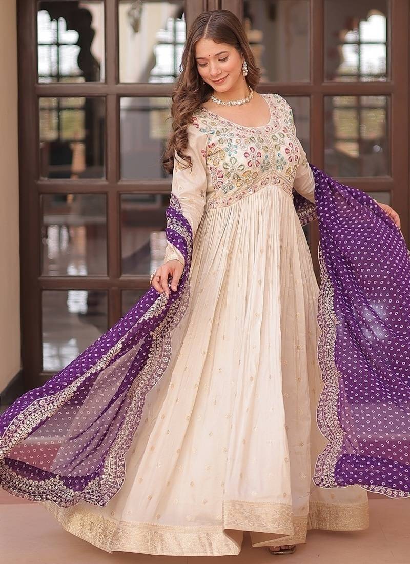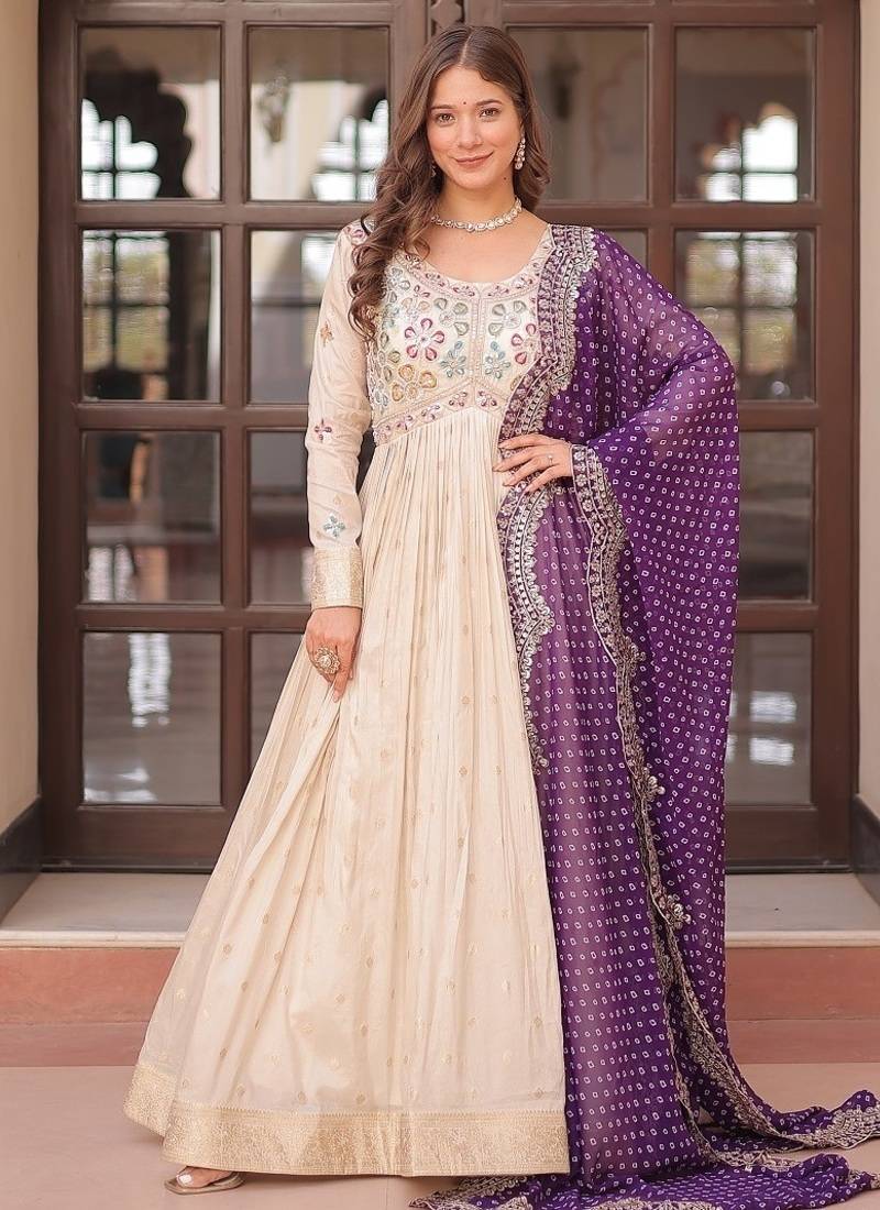 | Product Name | Purple Color Embroidered Cosmos Weaving Jacquard Gown Dupatta | |