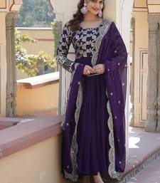 Purple color jacquard sequins work georgette gown with dupatta stitched