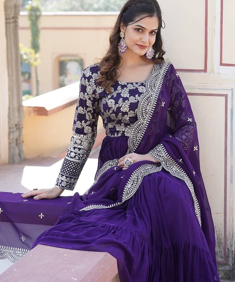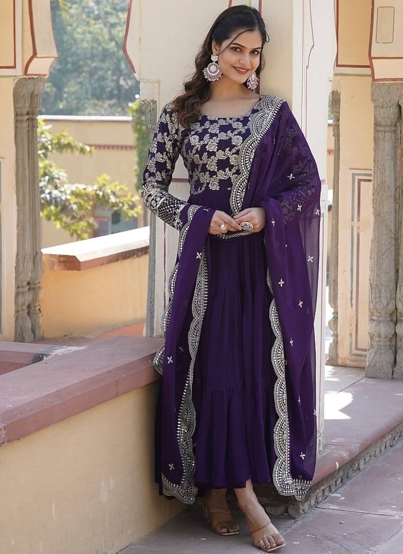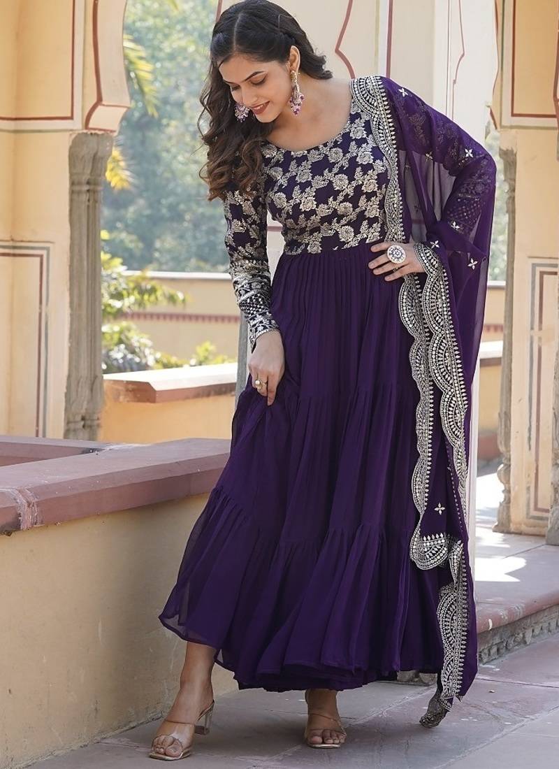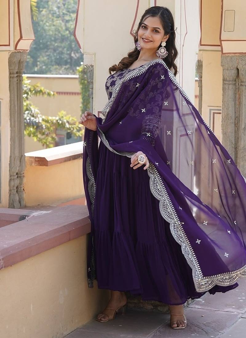 | Product Name | Purple Color Jacquard Sequins Work Georgette Gown With Dupatta | |