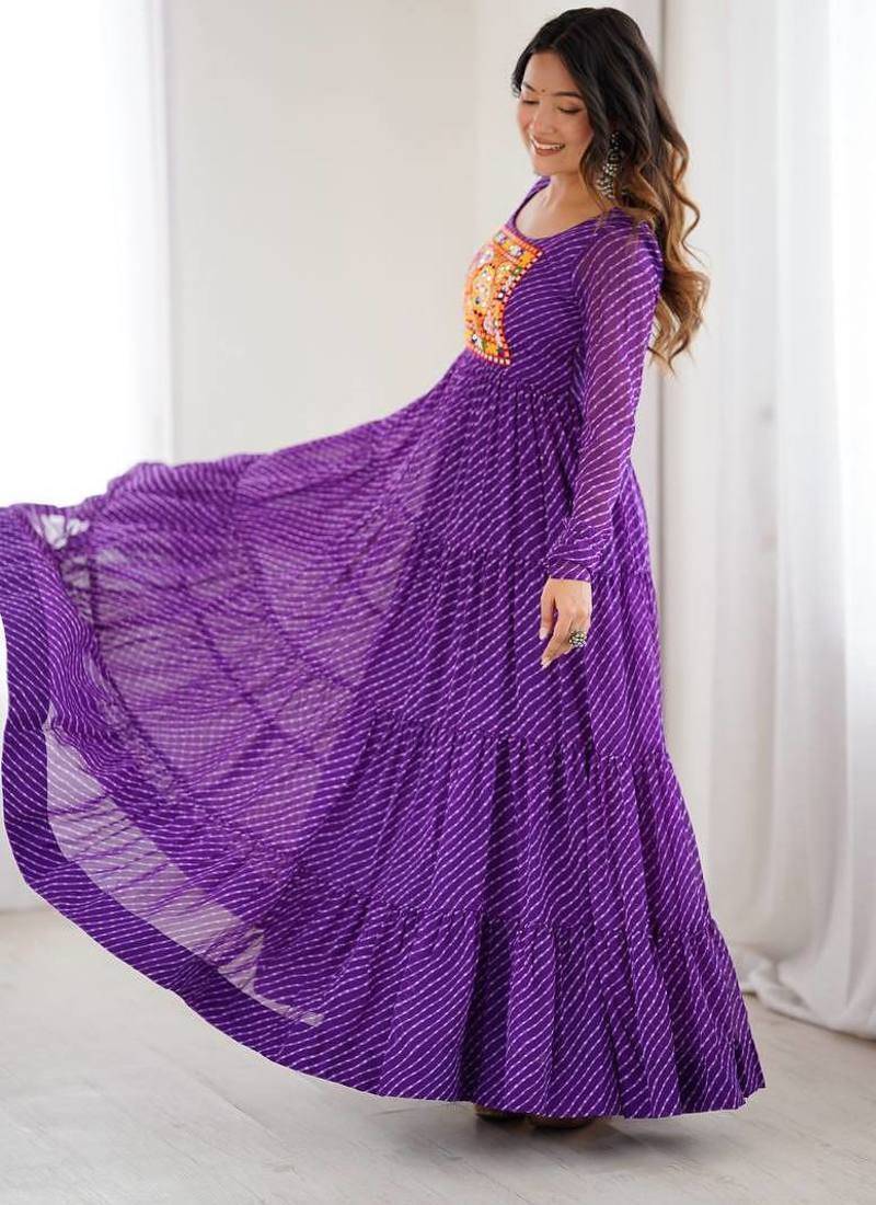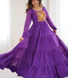 Purple color lehariya printed faux georgette stitched long anarkali gown