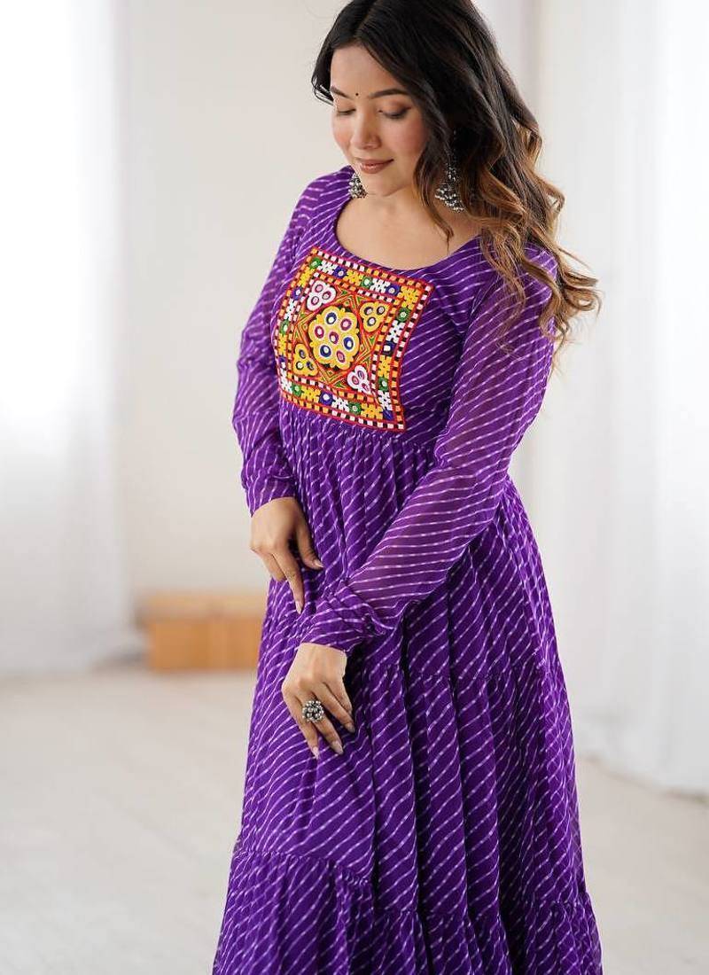 | Product Name | Purple Color Lehariya Printed Faux Georgette Stitched Long Anarkali Gown | |