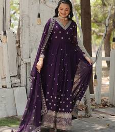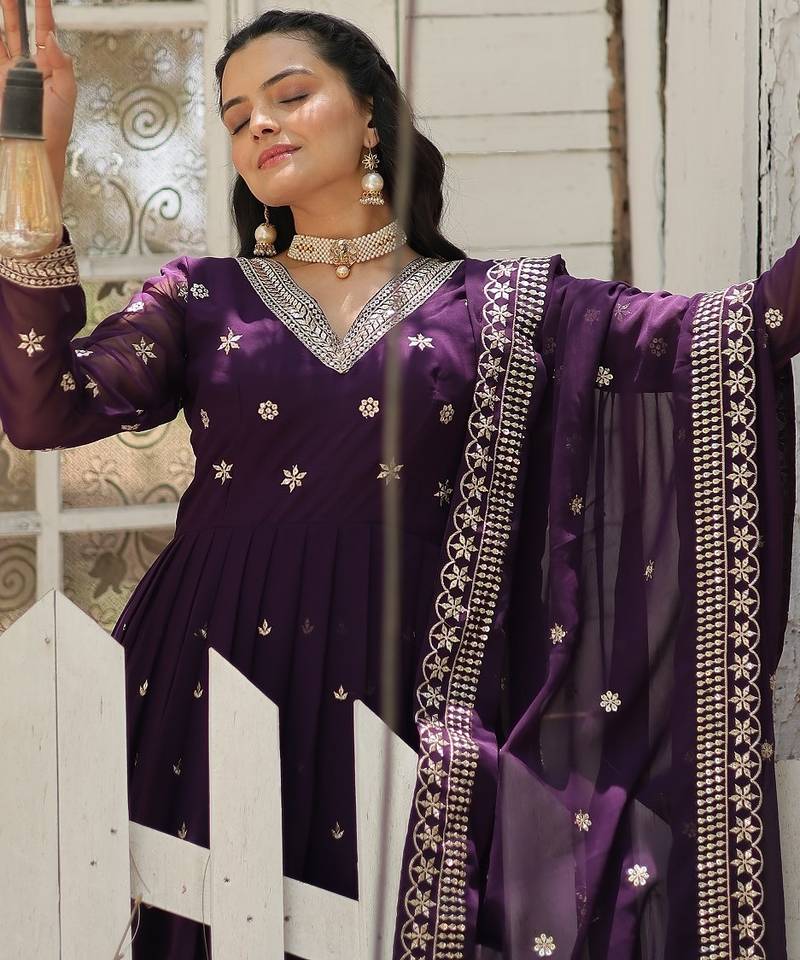 Purple color sequins embroidered work georgette gown with dupatta stitched