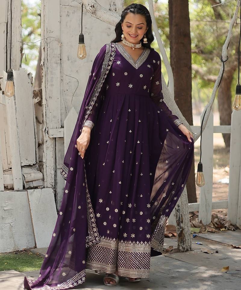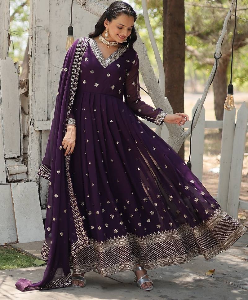 | Product Name | Purple Color Sequins Embroidered Work Georgette Gown With Dupatta | |