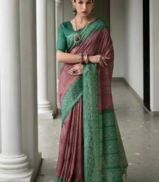 Purple color tussar silk ikkat printed saree