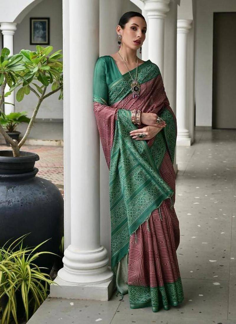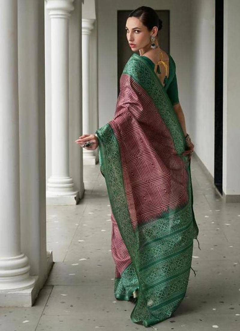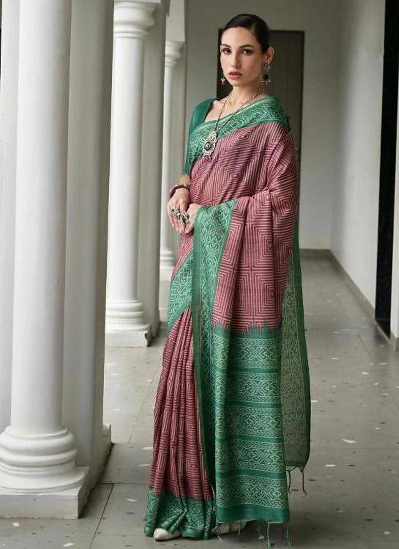 | Product Description | Soft Desi Tussar Silk Saree With Unique Ikkat Painted Pattern With Tradional Ikkat Pallu And Border With Traditional Tassels And Contrast Blouse Piece |