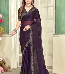 Purple color zircon work fendi satin silk saree