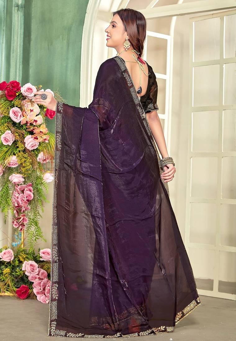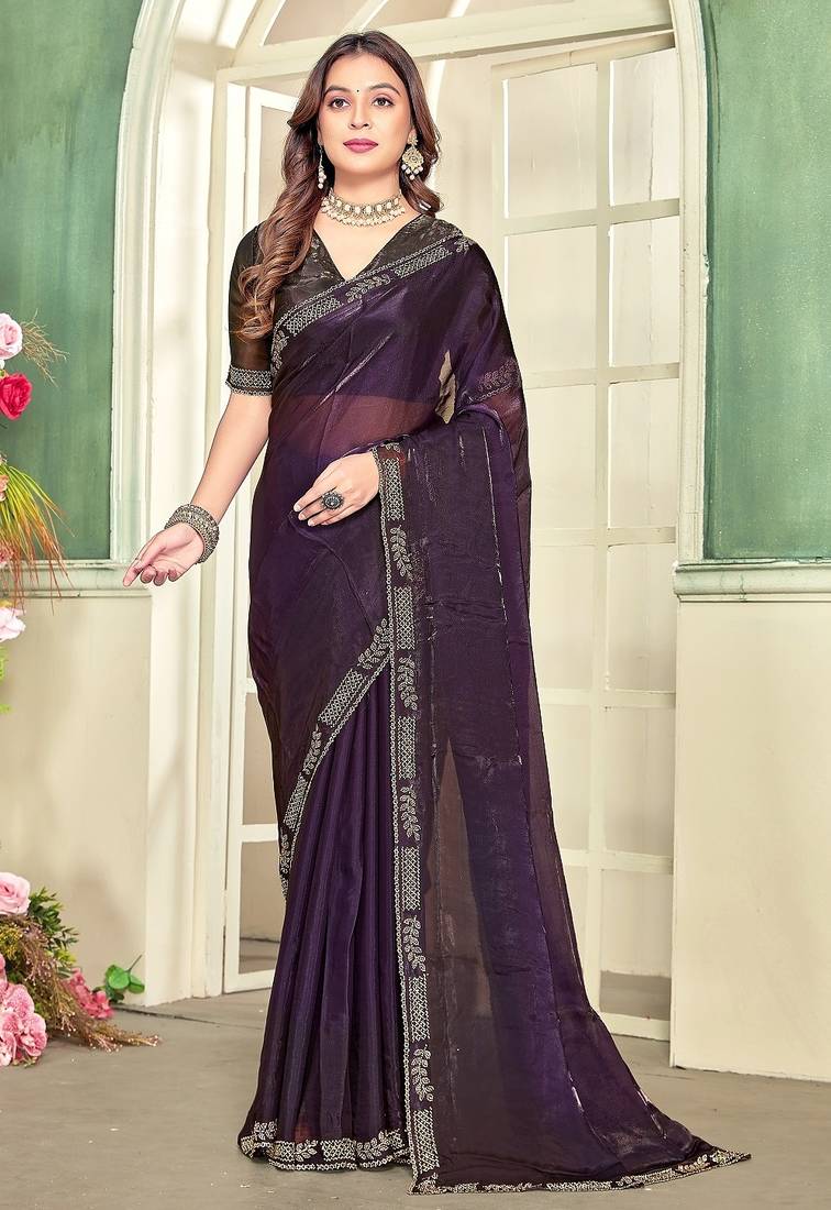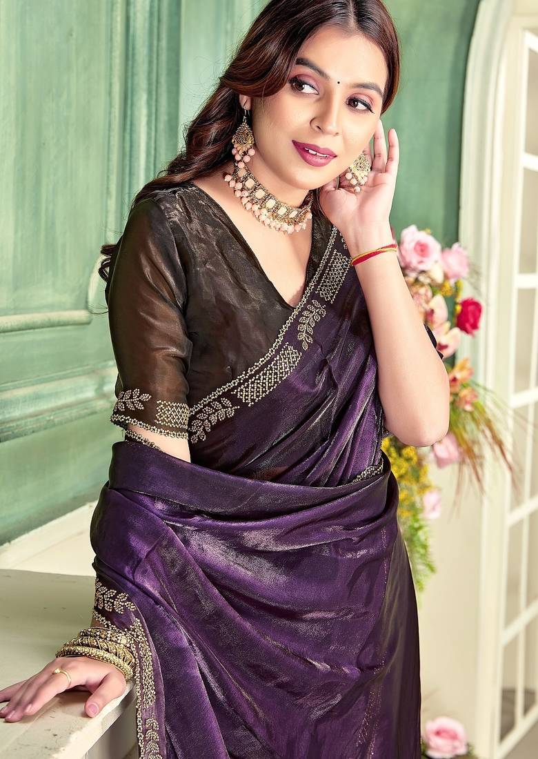 | Product Name | Purple Color Zircon Work Fendi Satin Silk Saree | |