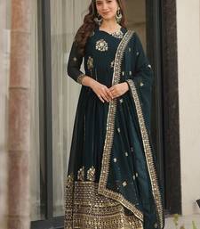 Rama blue color zari sequins embroidered georgette gown dupatta stitched