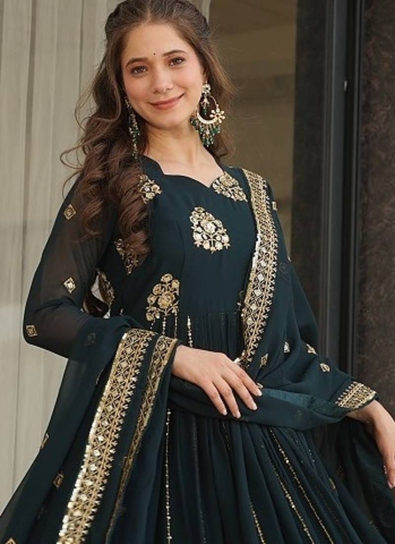 | Product Name | Rama Blue Color Zari Sequins Embroidered Georgette Gown Dupatta | |