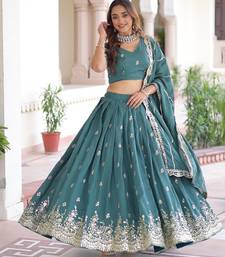 | Product Description | Desirable Women's Lehenga Made With Vichitra Silk With Rich Sequins Embroidery Work Blouse And Designer Embroidered Work Dupatta Lehenga: (Full Stitched) Vichitra Silk With Sequins & Zari Multi Embroidered Work Length : 42'' Waist : 42'' Inner : Cotton Flair : 3 Mtr Closure : Chain Attached & With Dori Latkan Stitching Type : Stitched With Canvas Patta Blouse: (Un Stitched) Vichitra With Rich Sequins & Zari Multi Embroidered Work Length : 1 Mtr Dupatta Vichitra Silk With Sequins & Zari Multi Embroidered Attractive Lace Border. Length : 2.3 Mtr |