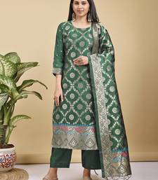 Readymade green color pure banarasi silk top pent dupatta set