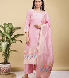 Readymade pink color pure banarasi silk top pent dupatta set