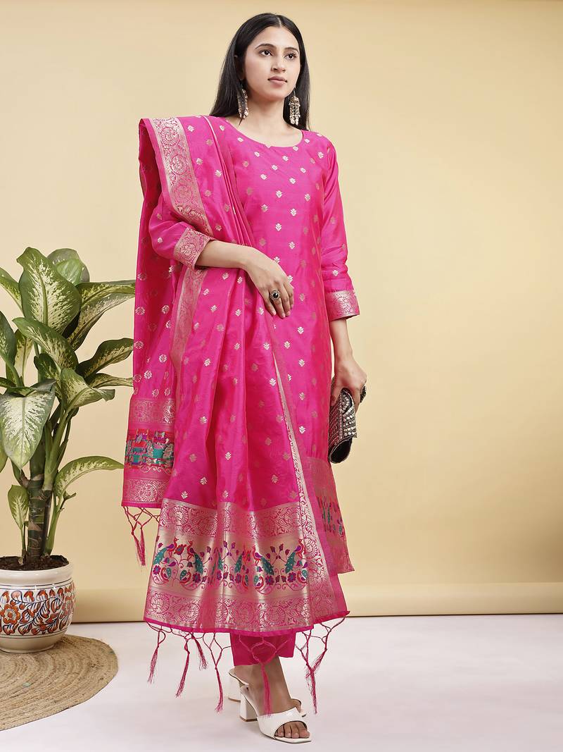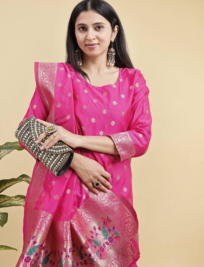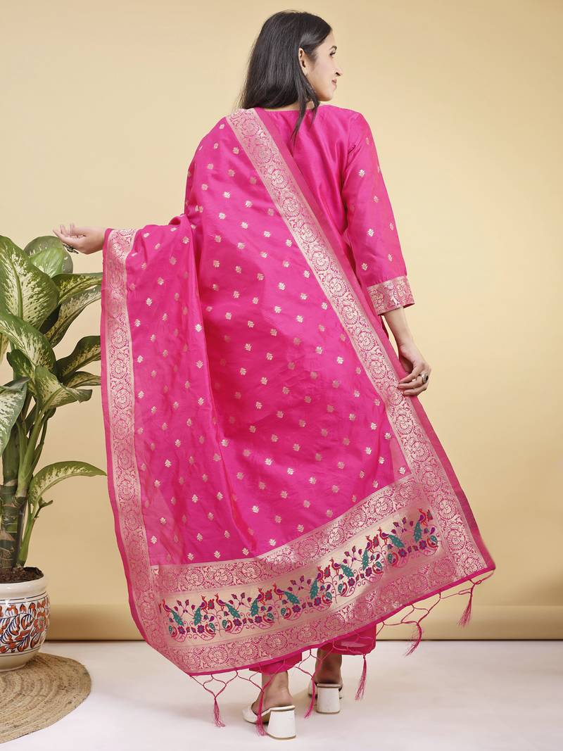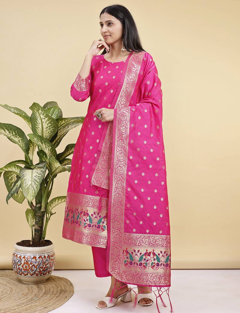 | Product Name | Readymade Pink Color Pure Banarasi Silk Top Pent Dupatta Set | |