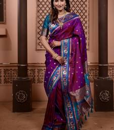 Pink color colorfull woven border zari work soft silk blend saree