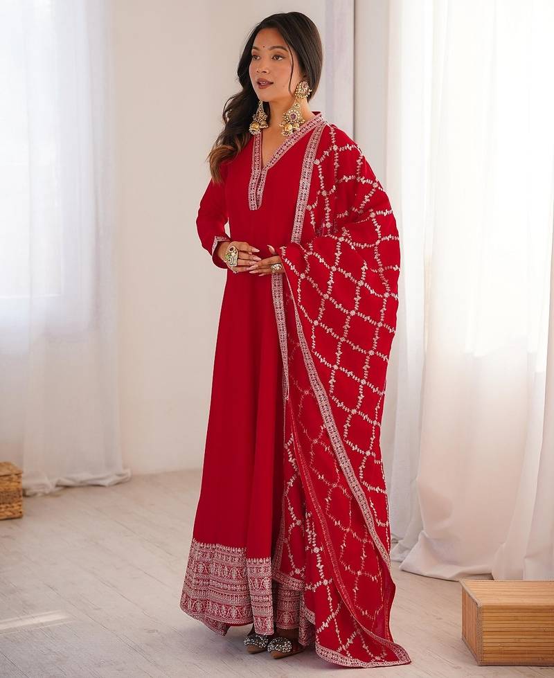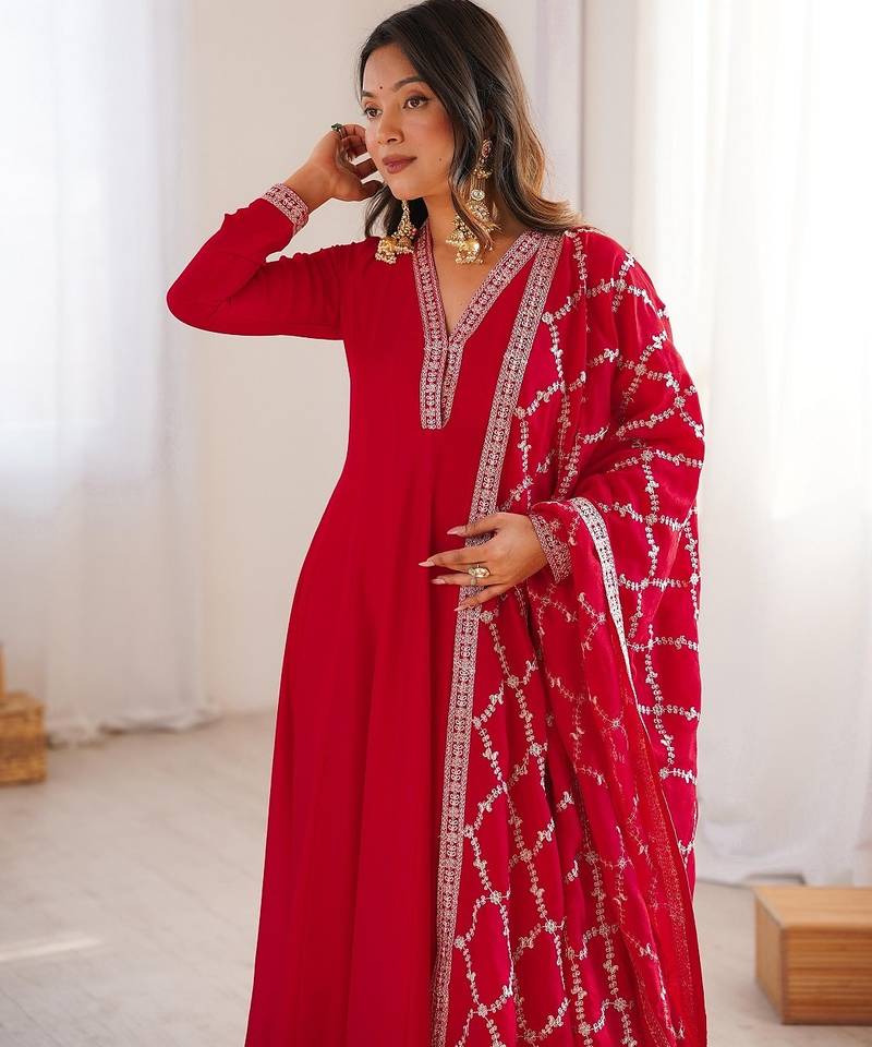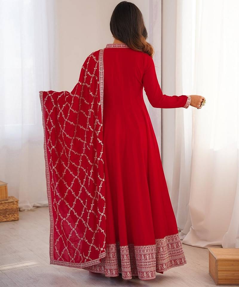 | Product Name | Red Color Dori Zari Sequince Embroidered Vichitra Silk Anarkali Set | |