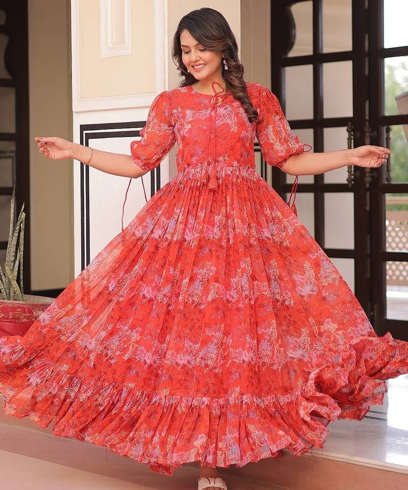 | Product Name | Red Color Faux Georgette Printed Flair Gown | |