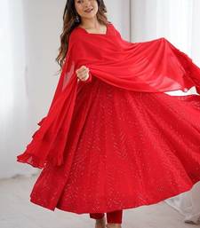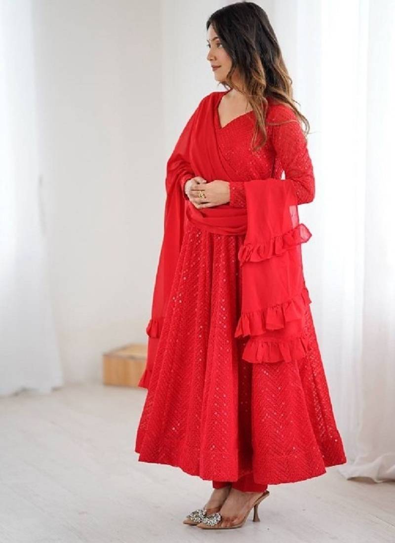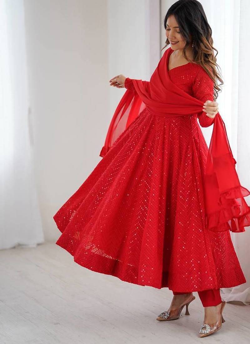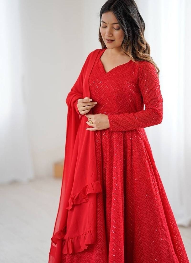 | Product Name | Red Color Lucknowi Sequince Thread Work Faux Georgette Anarkali Set | |