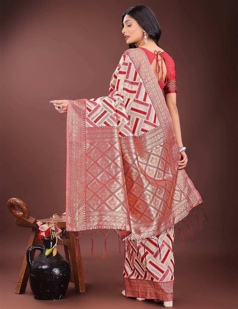 | Product Name | Red Color Woven Work Linen Cotton Saree | |