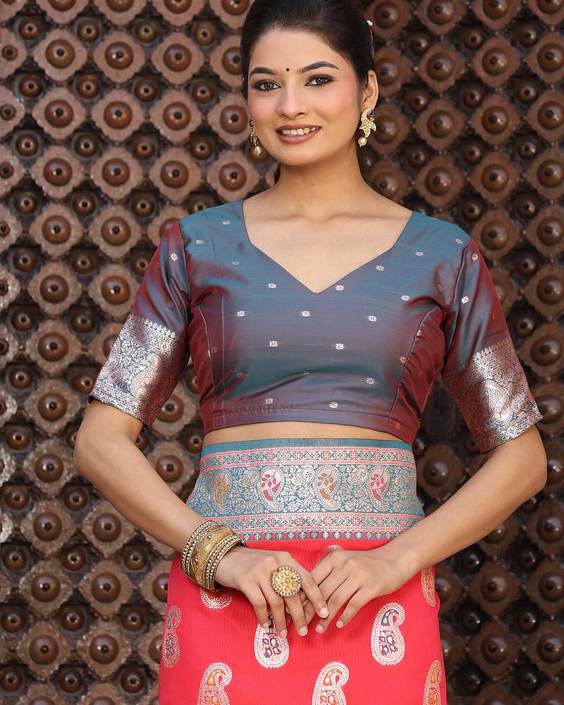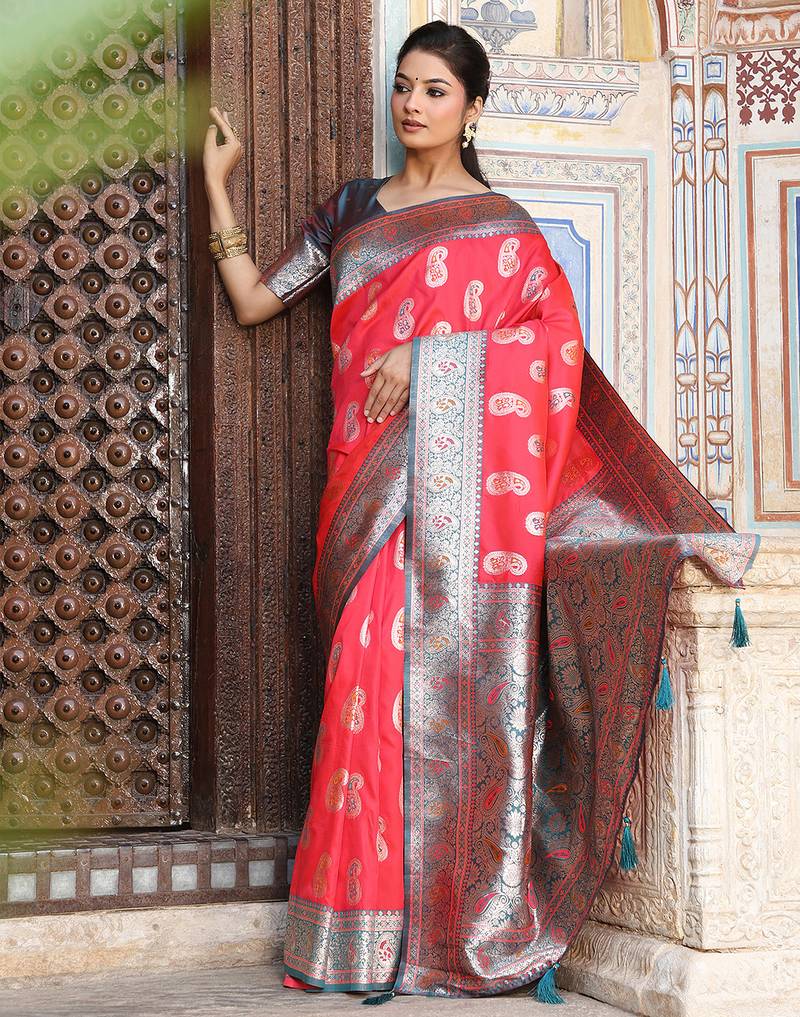 | Product Name | Red Color Woven Work Art Silk Wedding Wear Saree | |