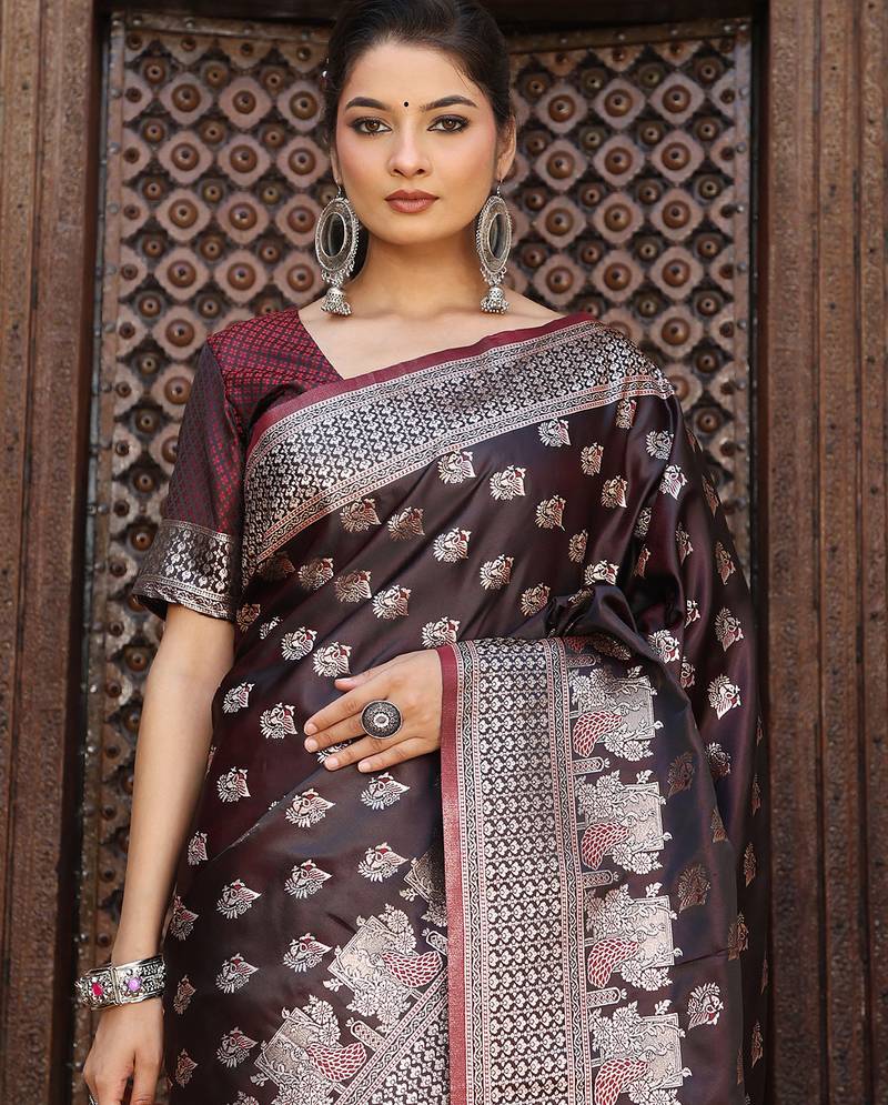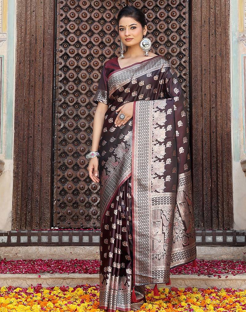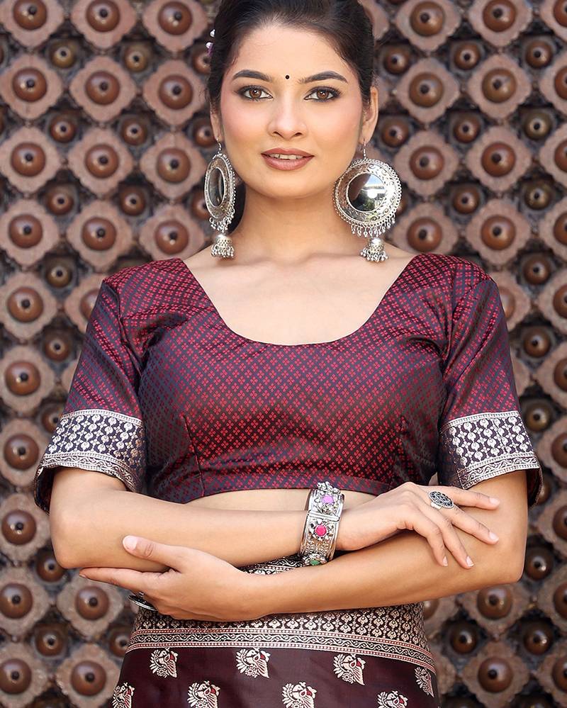 | Product Description | Pure Silk Zari Woven Latkan Pallu Work Women's Beautiful Indian Party Wear Festival Saree With Un Stitched Blouse |
