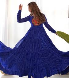 Royal blue color lehariya printed faux georgette stitched long anarkali gown