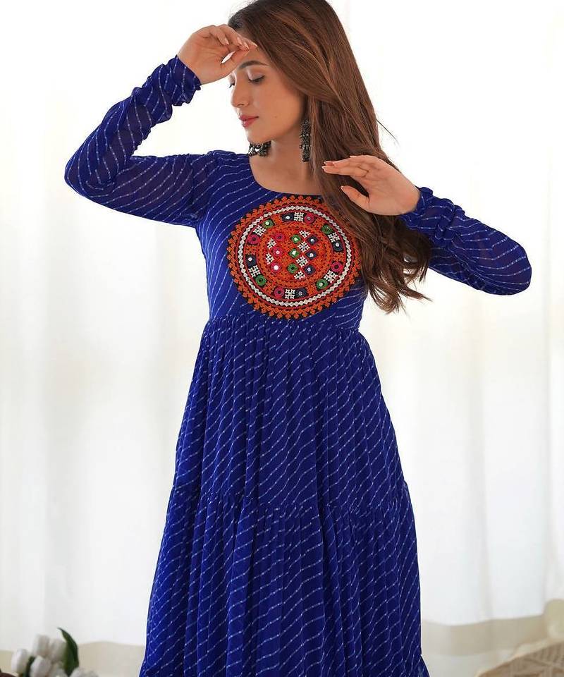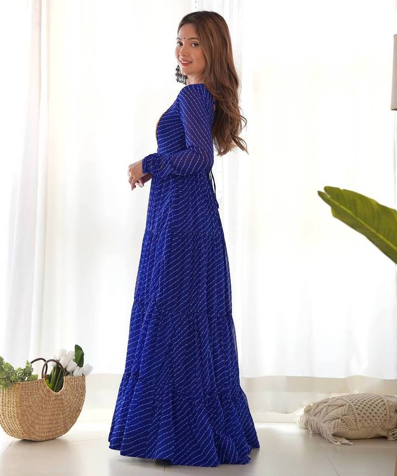 | Product Name | Royal Blue Color Lehariya Printed Faux Georgette Stitched Long Anarkali Gown | |
