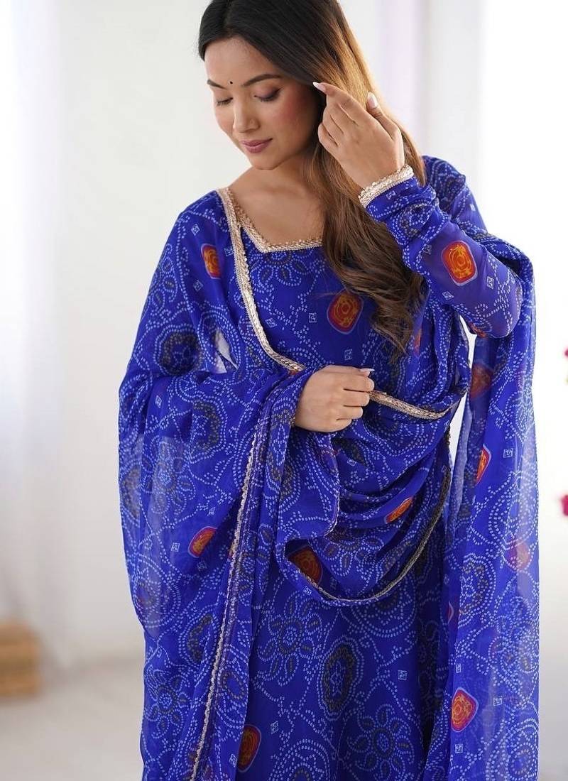 | Product Name | Royal Blue Color Lightweight Bandhej Printed Chiffon Anarkali Set | |
