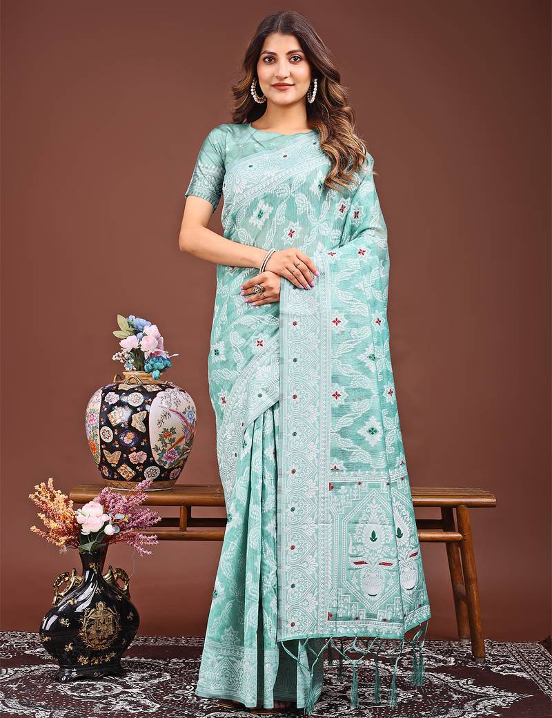 | Product Name | Sea Green Color Woven Linen Cotton Saree | |