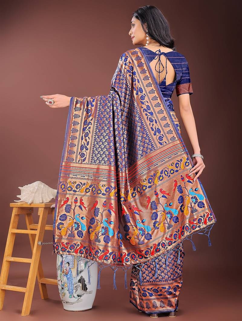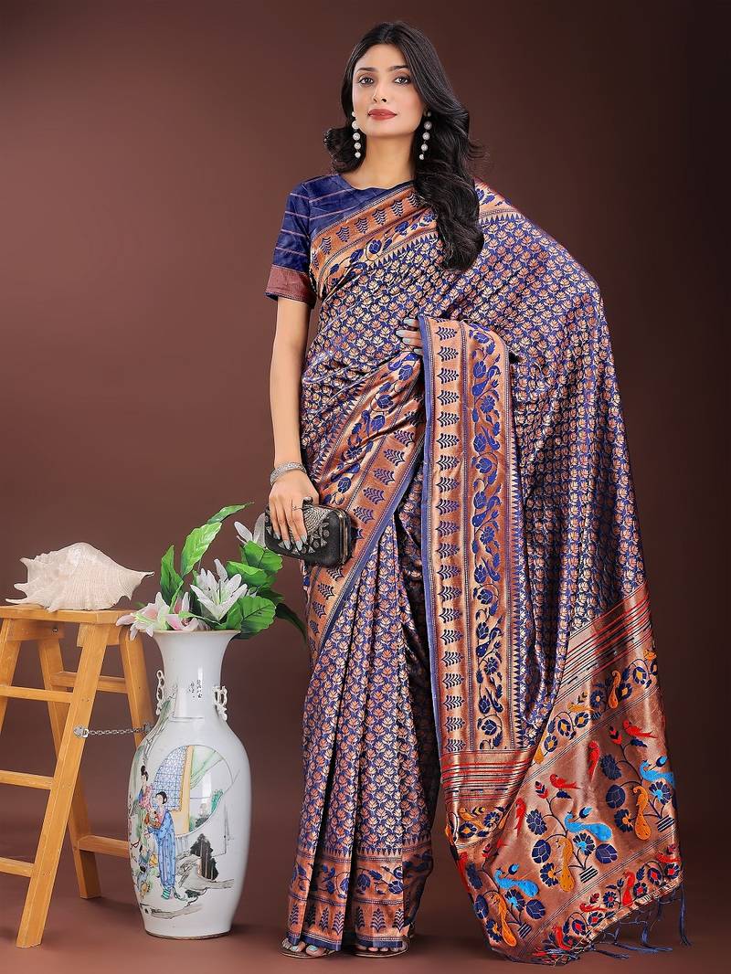 | Product Name | Navy Blue Color Woven Work Art Silk Wedding Saree | |