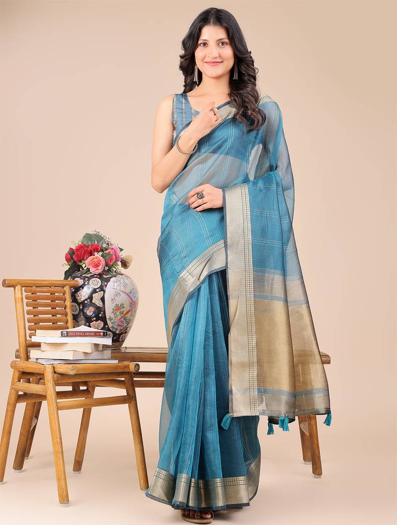 | Product Name | Sea Blue Color Zari Border Orgenza Saree With Blouse | |