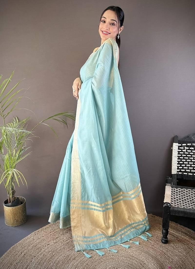 | • | Saree | : | Color- Sky Blue / Fabric- Cotton |