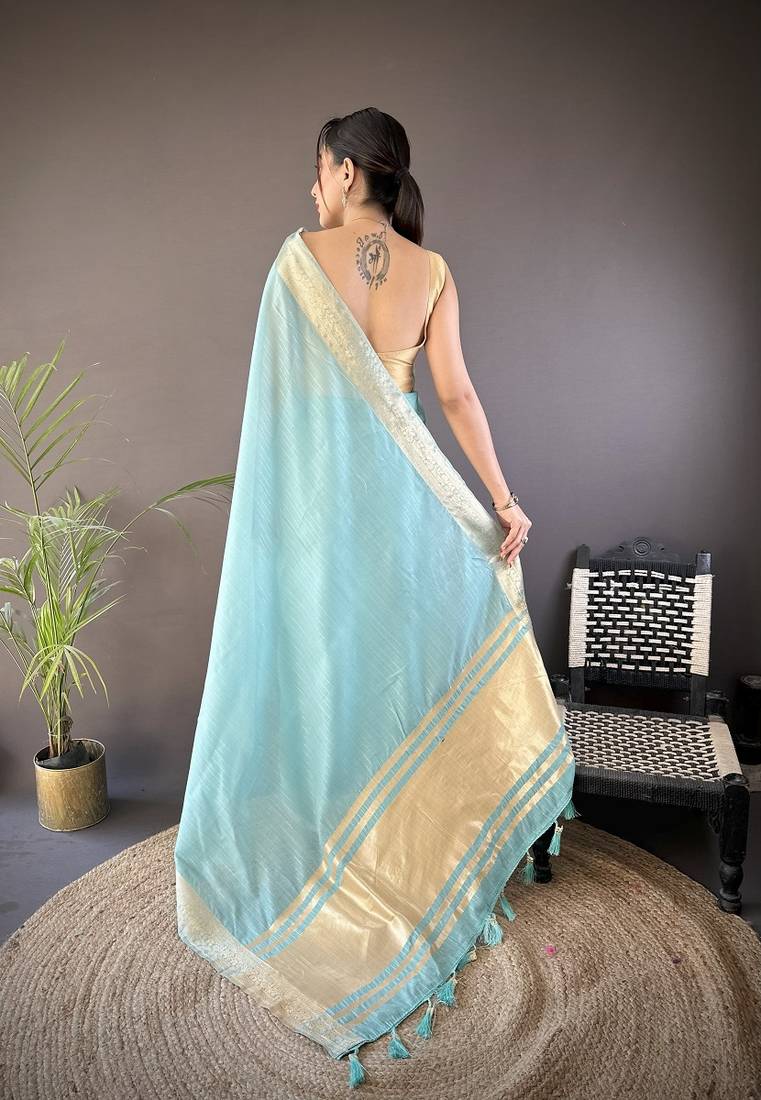 | Product Name | Sky Blue Color Cotton Checks Zari Border Work Saree | |