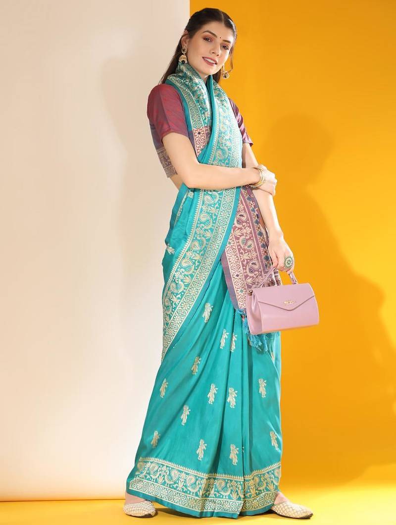 Saree : Color- Sky Blue / Fabric- Silk Blend