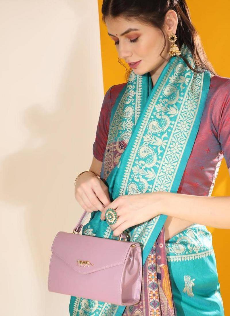 Soft Raw Silk Two Tone Weaving Saree With Antique Design With Exclusive Contrast Woven Pallu And Contrast Blouse Piece