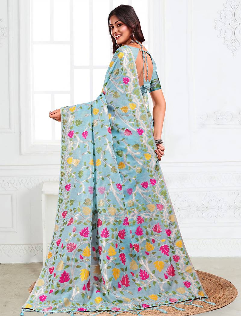 | Product Name | Sky Blue Color Weaven Flower Linen Cotton Saree | |