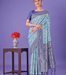 Sky blue color woven lichi art silk blend saree