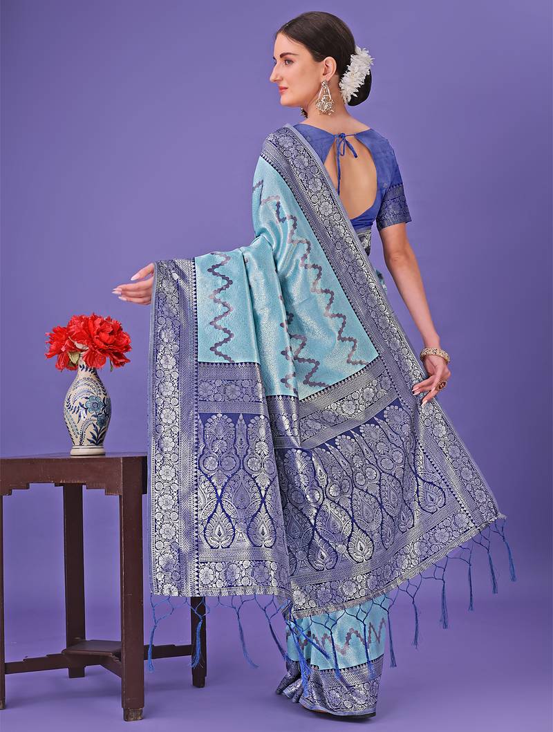 | Product Name | Sky Blue Color Woven Lichi Art Silk Blend Saree | |