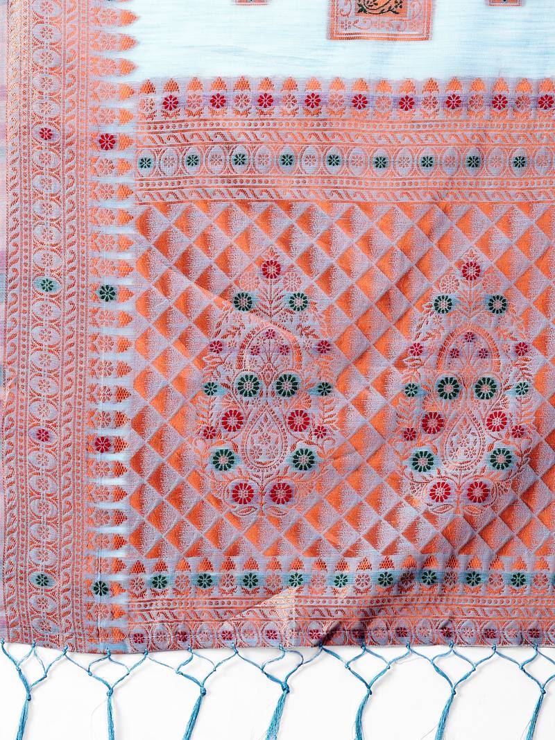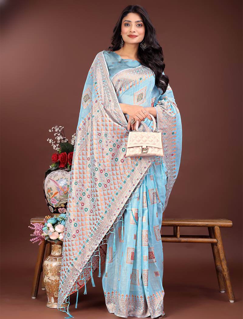 Product Name Sky Blue Color Woven Linen Cotton Saree