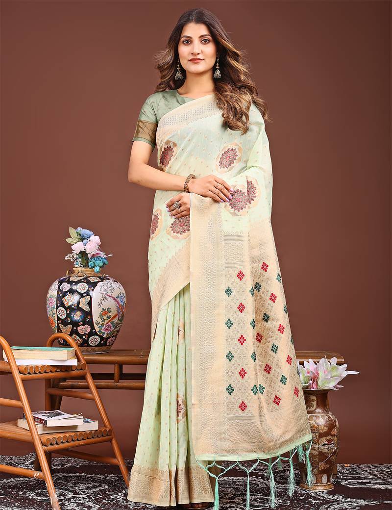 | Product Name | Green Color Woven Linen Cotton Saree | |