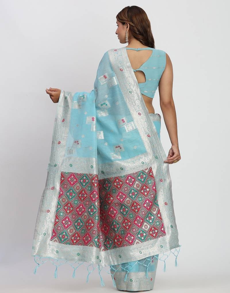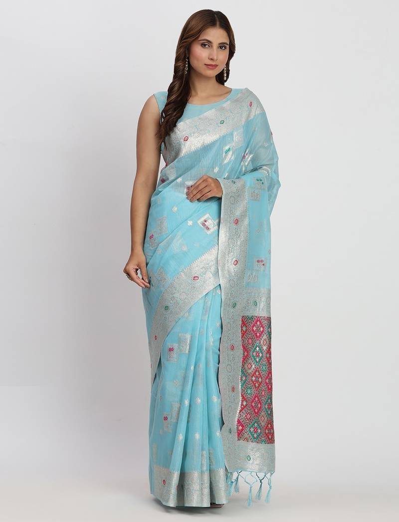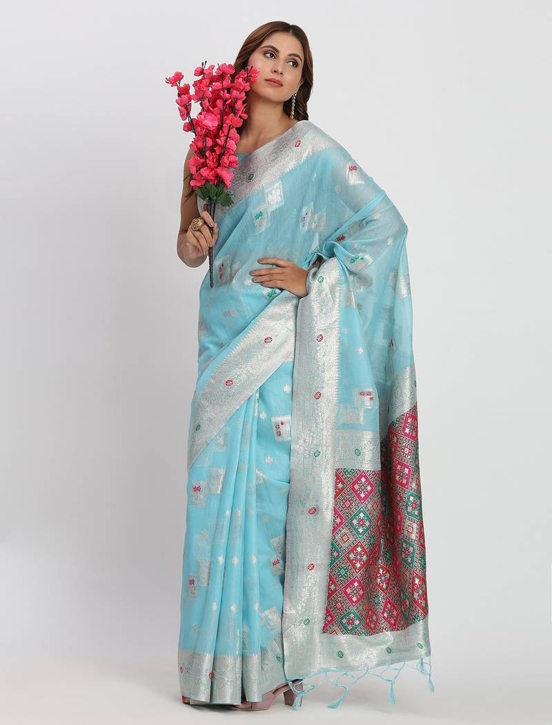 Product Name Sky Blue Color Woven Work Linen Cotton Saree