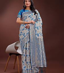 Product Name Sky Blue Color Woven Work Linen Cotton Saree