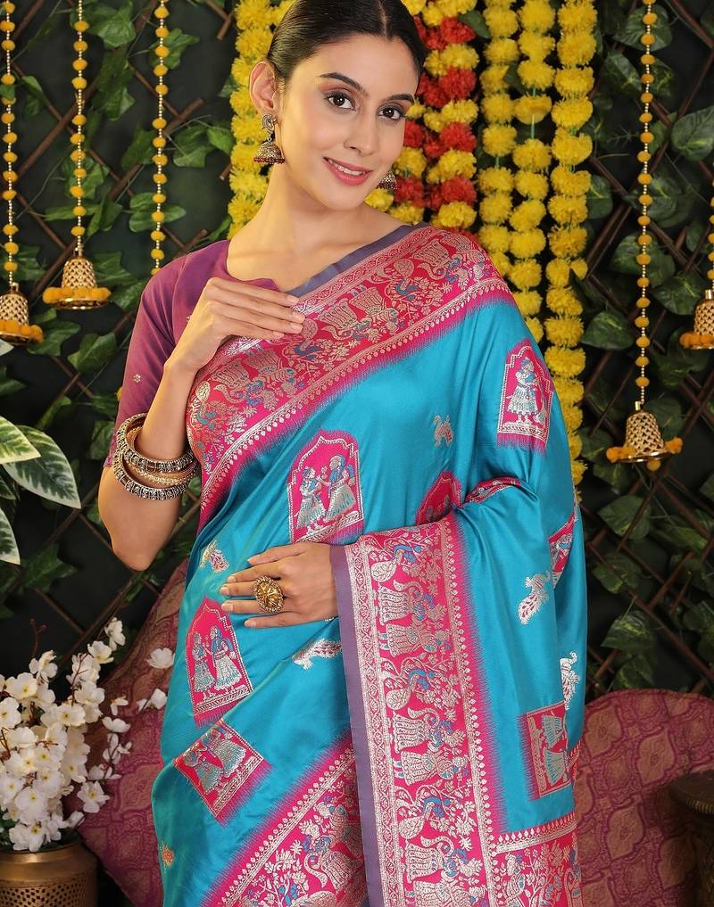 | Product Name | Sky Blue Color Woven Work Art Silk Wedding Wear Saree | |