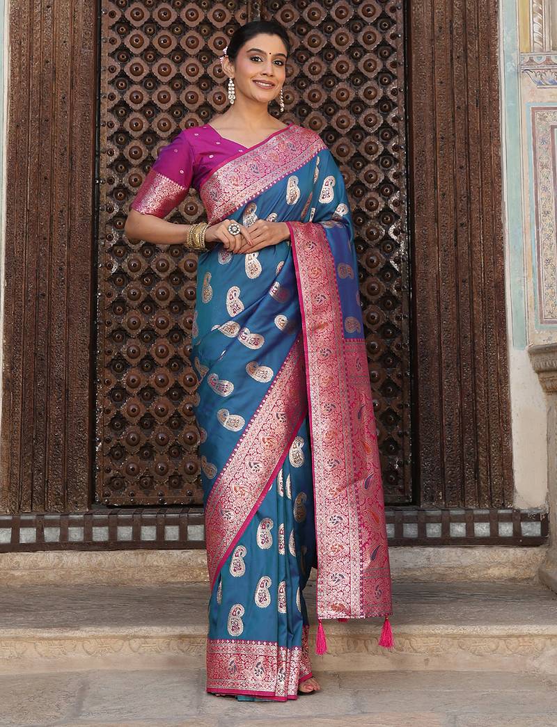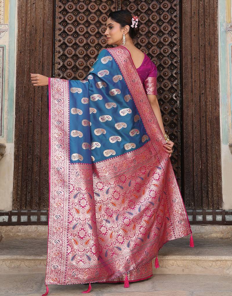 | Product Name | Sky Blue Color Woven Work Art Silk Wedding Wear Saree | |